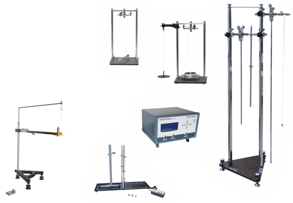 實驗裝置綜合了單擺、復(fù)擺、三線擺、扭擺、雙線擺、慣性秤、碰撞打靶等組成,配備了高速激光光電門,可以測量瞬時速度和擺動周期,用于探究單擺、復(fù)擺的非線性運動??扇颗渲猛瓿筛鞣N擺的動力學綜合設(shè)計性實驗,也可單獨搭配開設(shè)實驗。