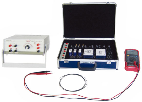 實(shí)驗(yàn)儀由測(cè)試實(shí)驗(yàn)暗箱、九孔板插件、實(shí)驗(yàn)元件、電源、數(shù)字萬用表等組成。