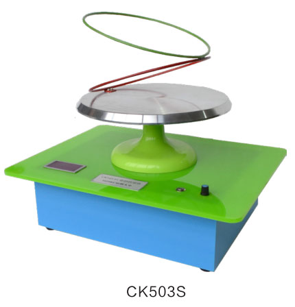 用于演示視覺暫留現(xiàn)象。物體在視網(wǎng)膜上成像一旦外界光刺激消失,像也隨之消失,但視神經(jīng)對(duì)光刺激印象可保留約 0.1 秒時(shí)間,也就是人眼的視覺暫留特性。因此只要先后出現(xiàn)在眼前的兩幅畫面間隔時(shí)間小于 0.1 秒,視神經(jīng)會(huì)把兩幅畫面“疊加”。開啟設(shè)備電源,調(diào)節(jié)變速器,當(dāng)電機(jī)到達(dá)一定轉(zhuǎn)速時(shí),可以看到紅色圓環(huán)在圓盤上無(wú)固定點(diǎn)的貼著圓盤跳動(dòng),綠色圓環(huán)無(wú)固定點(diǎn)的貼著紅色圓環(huán)在跳動(dòng)。