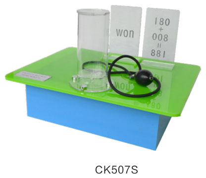 用于演示凸透鏡成像規(guī)律。物體放在焦點(diǎn)之外,在凸透鏡另一側(cè)成倒立的實(shí)像,實(shí)像有縮小、等大、放大三種。物距越小,像距越大,實(shí)像越大。物體放在焦點(diǎn)之內(nèi),在凸透鏡同一側(cè)成正立放大的虛像。物距越大,像距越大,虛像越大。本儀器主要利用凸透鏡成像規(guī)律,當(dāng)圓桶里注入水后,通過圓桶觀看會發(fā)現(xiàn)面板上原本錯誤的等式變?yōu)槌闪⒘恕?/p>